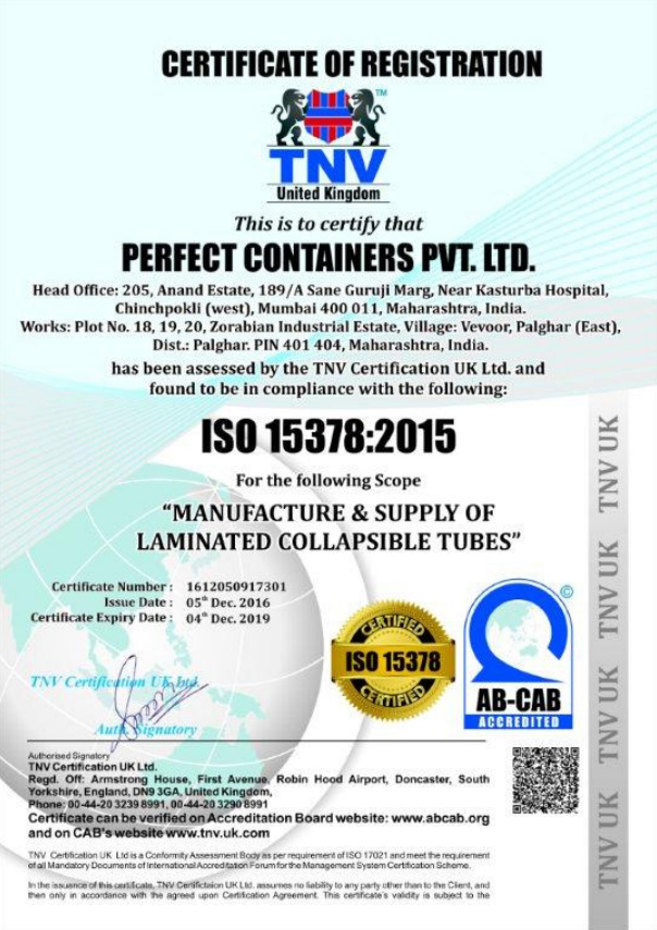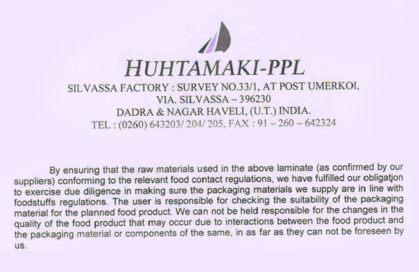 Tube laminates are sourced from Huhtamaki PPL, Leading web maker globally. Their facility is located within 100 kms from our plant.